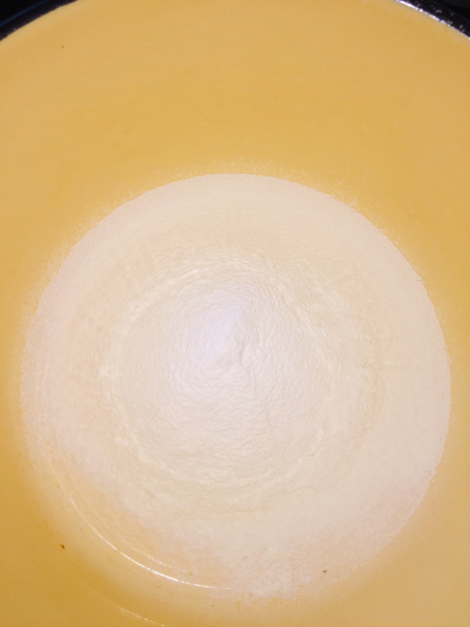 Просеял муку, половину высыпал, сделал горку с углублением и добавил туда яйцо и постепенно вливая молоко стал всё вместе смешивать.