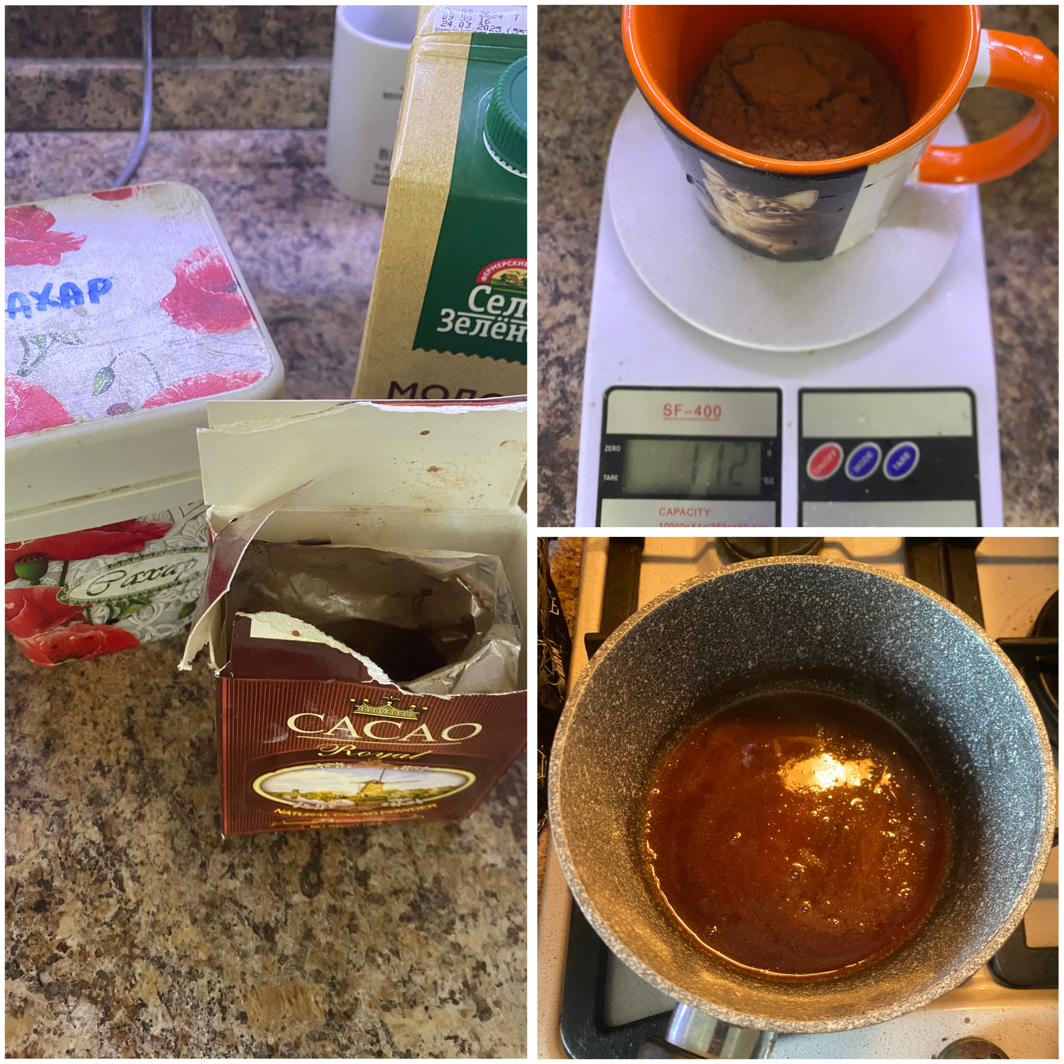 - молоко перемешиваем с какао и нагреваем в микроволновке до температуры 100 градусов.
