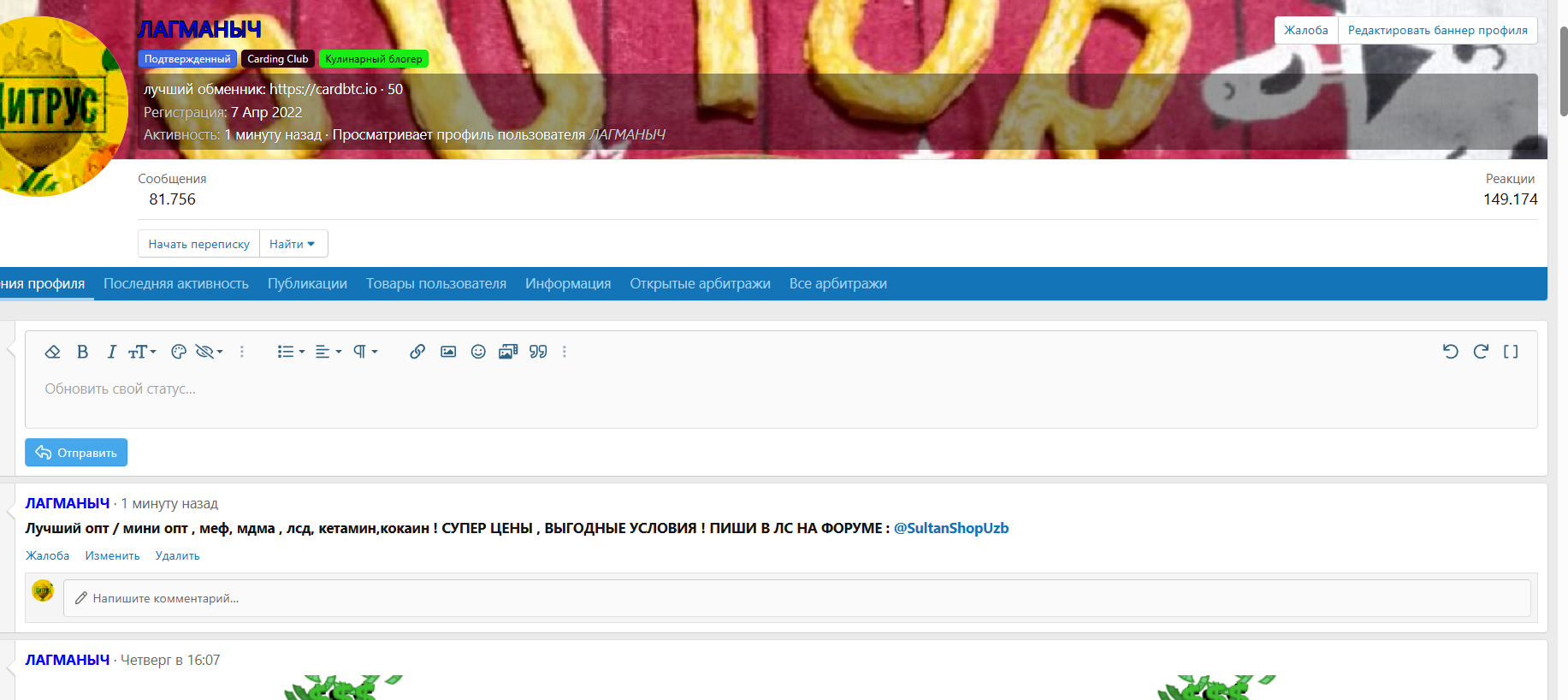4. ПИШЕМ СЕБЕ В ПРОФИЛЬ(*раздел форума:что нового?) СЛЕДУЮЩЕЕ СООБЩЕНИЕ :