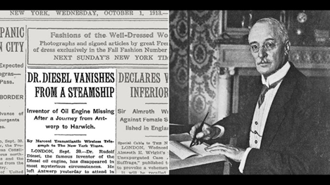 Вопрос, что случилось с Рудольфом Дизелем, остается открытым и по сей день. По одной из версий, он покончил с собой. В ее пользу говорит тот факт, что перед поездкой Дизель передал жене большой конверт, который следовало вскрыть через неделю. В конверте обнаружилась огромная сумма наличными.